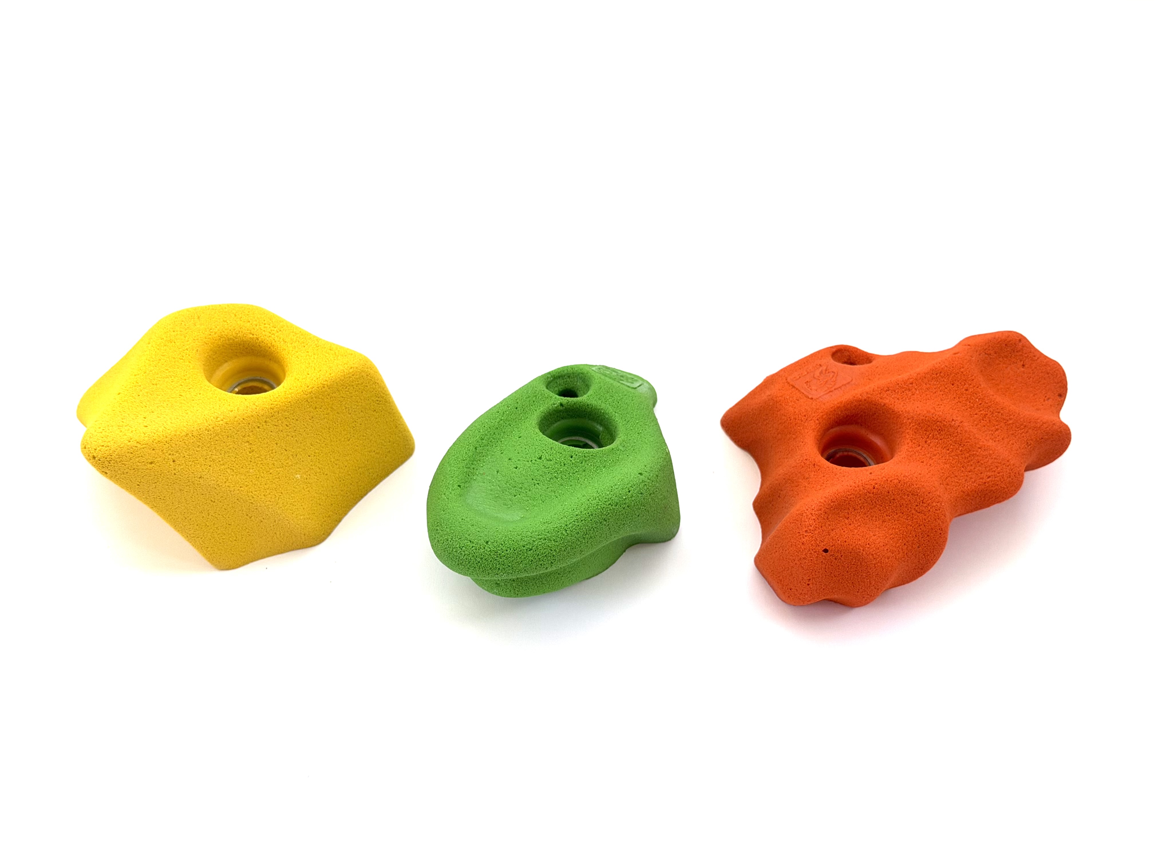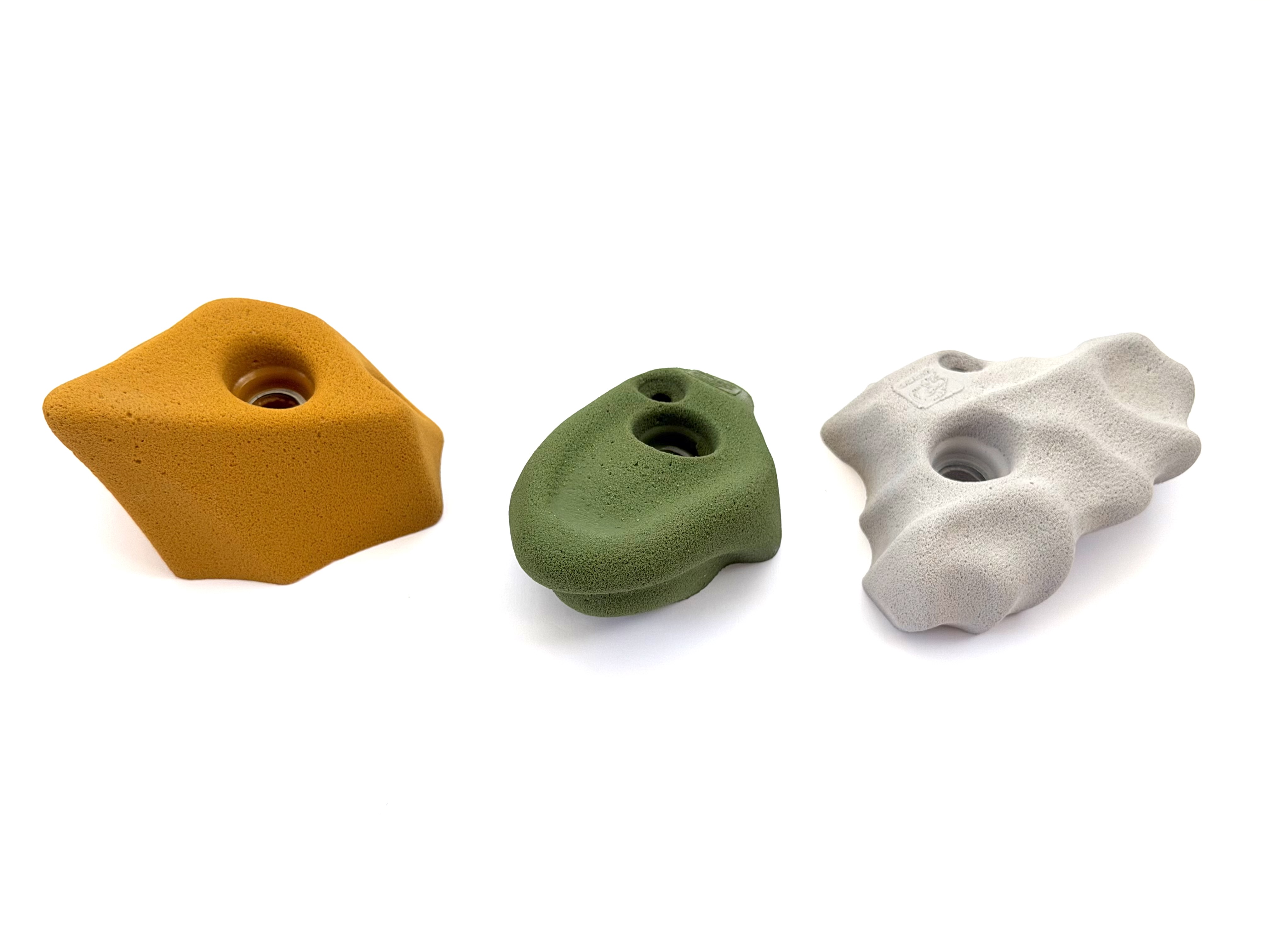 Zestaw 5 średniej wielkości bardzo łatwych chwytów idealnie nadających się dla dzieci na place zabaw oraz na domowe ścianki wspinaczkowe.
